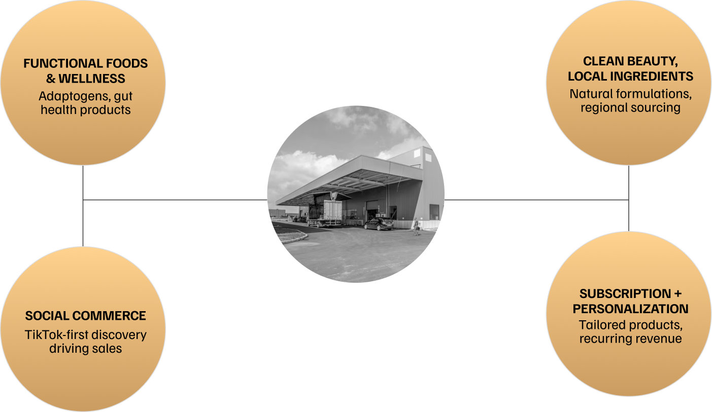 Rapid product scaling, short innovation cycles, and vibrant M&A activity in health, wellness, and digital commerce provide growth potential.